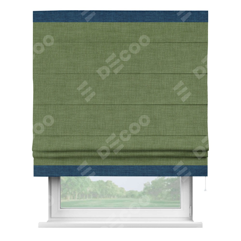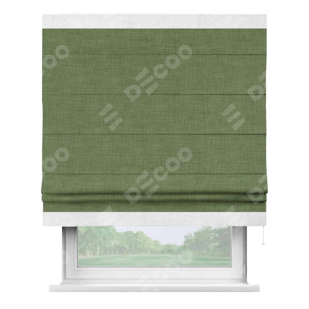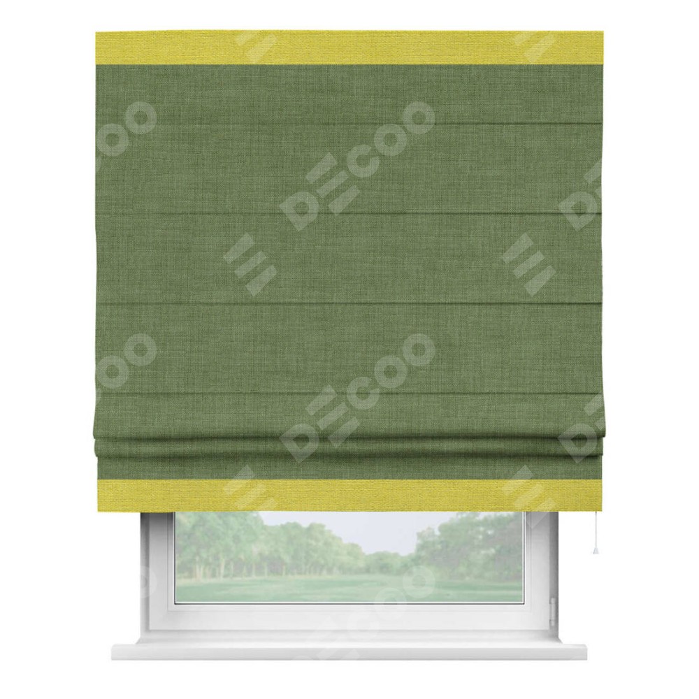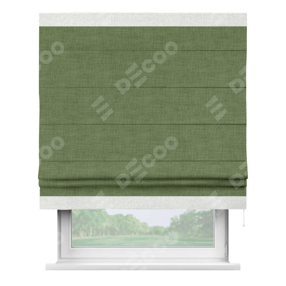 Римская штора «Кортин» для проёма, лён зелёный, с кантом Горизонт