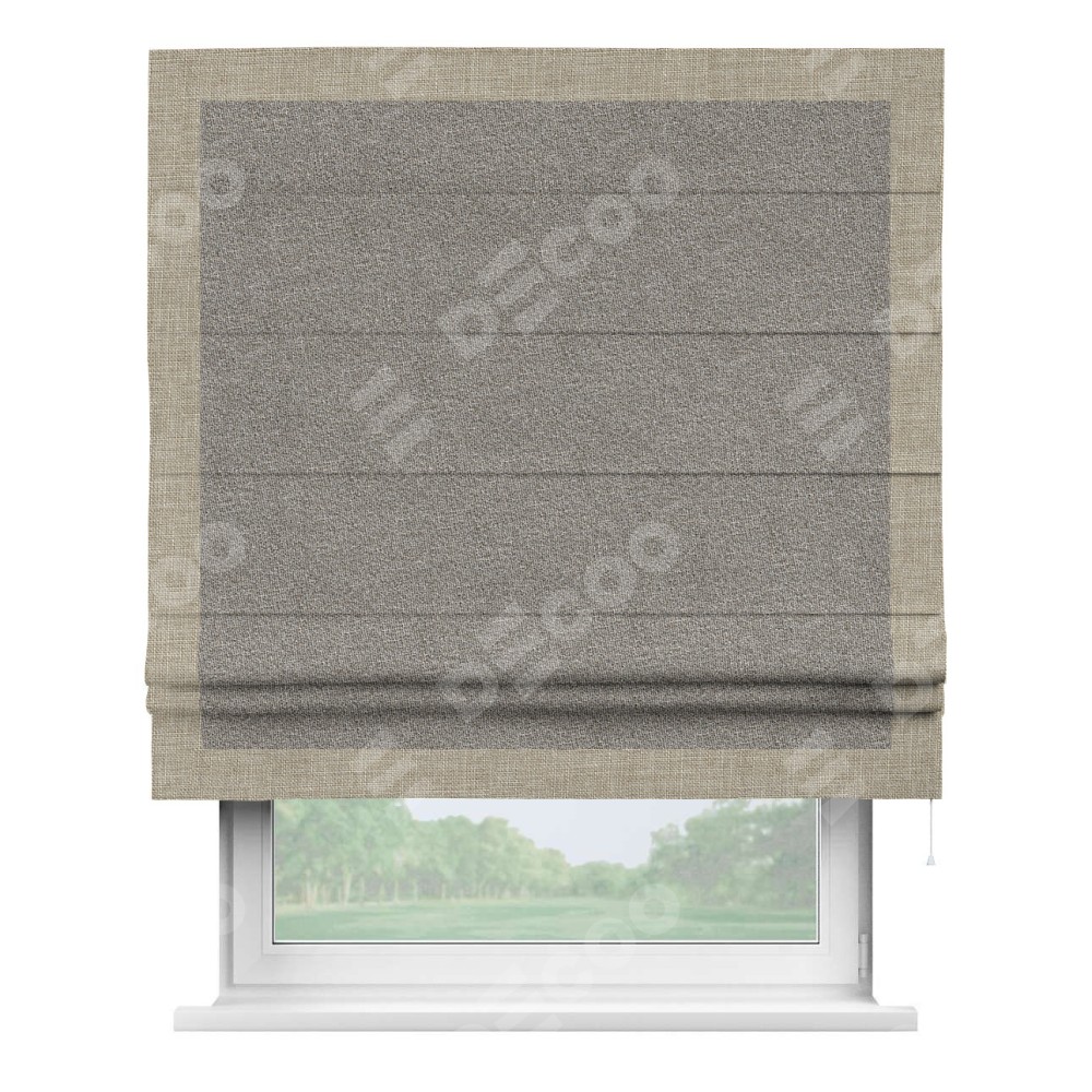 Римская штора «Кортин» для проёма, лён меланж натуральный, с кантом Чесс