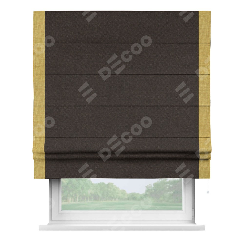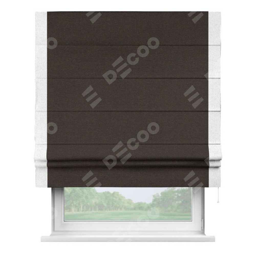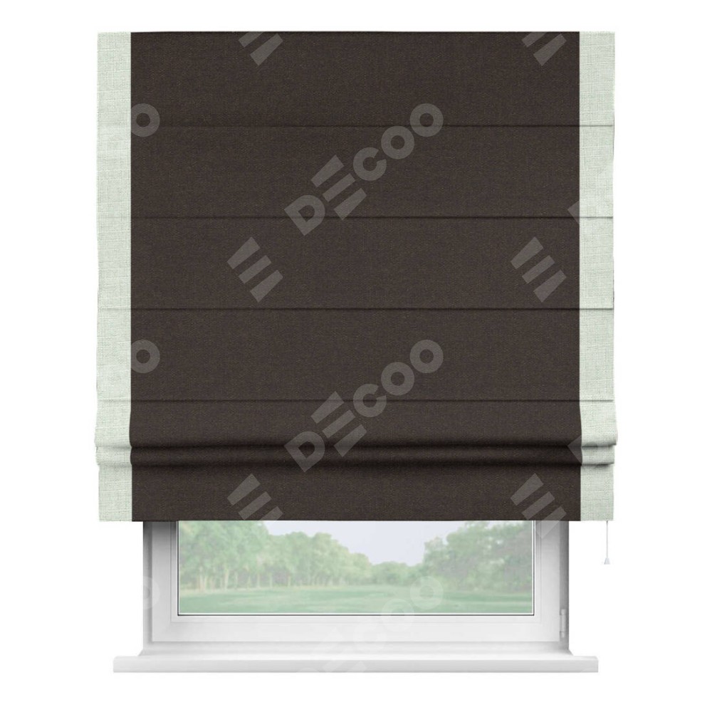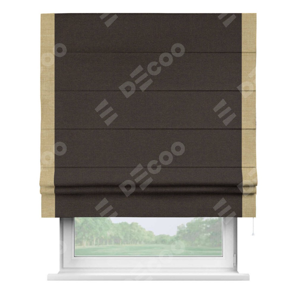 Классическая римская штора производителя «Cortin», пошита из ткани лён тёмно-коричневый, артикул: 104497. Имеет универсальный механизм и подходит для монтажа: на потолок, на стену и в нишу.