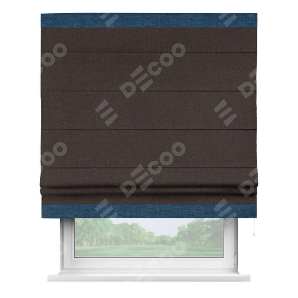 Римская штора «Кортин» для проёма, лён тёмно-коричневый, с кантом Горизонт