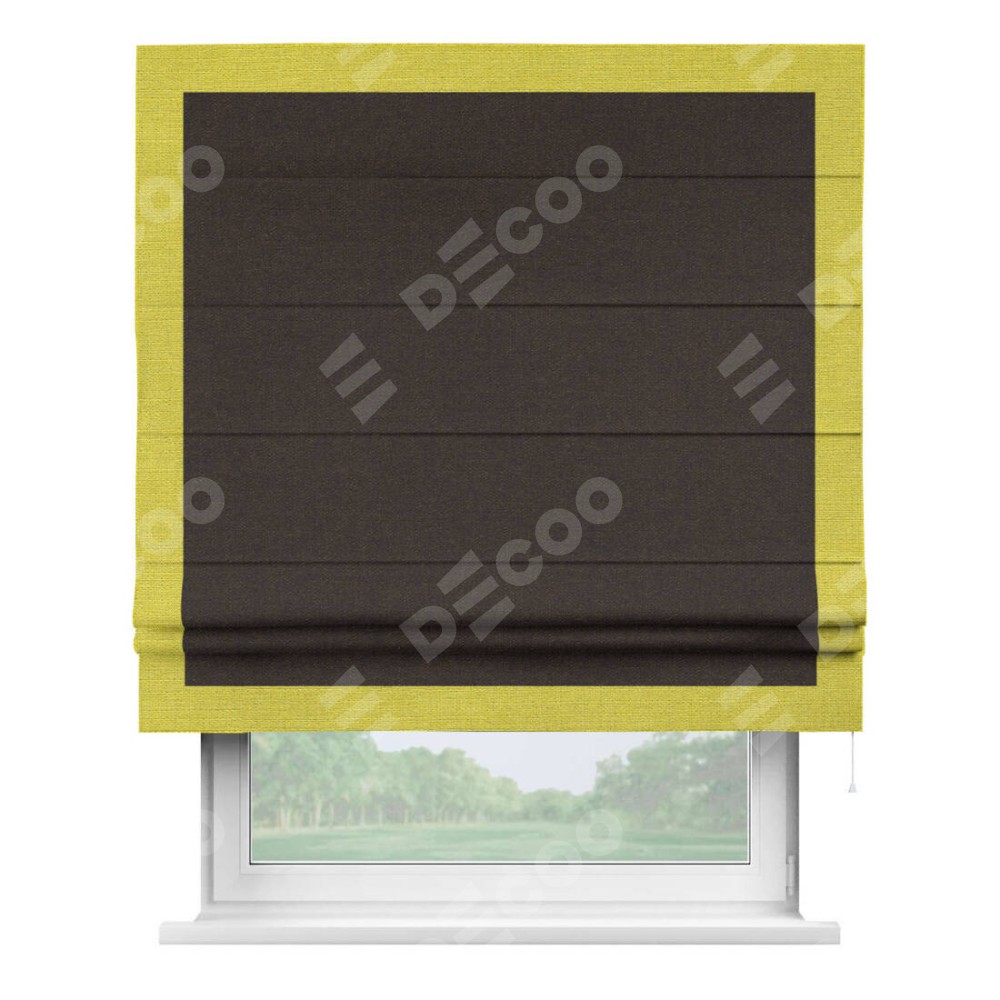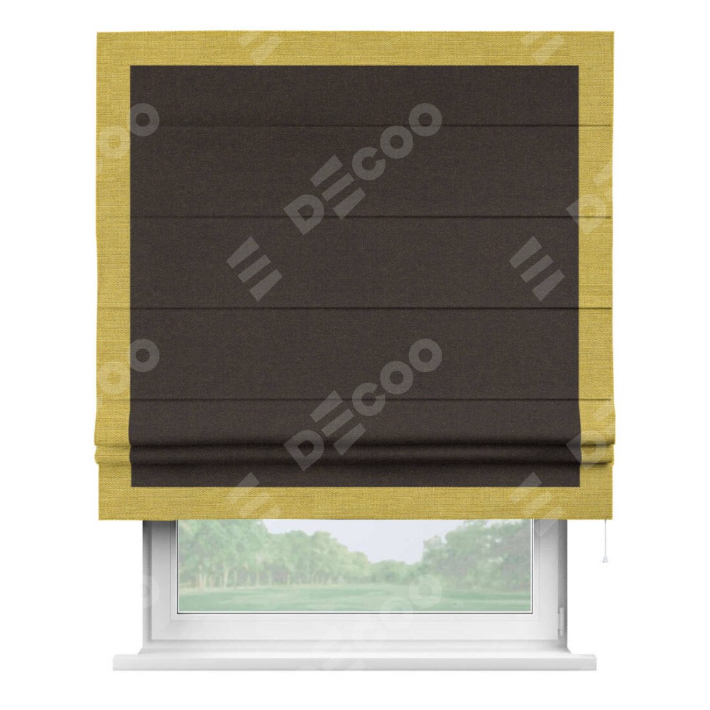 Классическая римская штора производителя «Cortin», пошита из ткани лён тёмно-коричневый, артикул: 104497. Имеет универсальный механизм и подходит для монтажа: на потолок, на стену и в нишу.