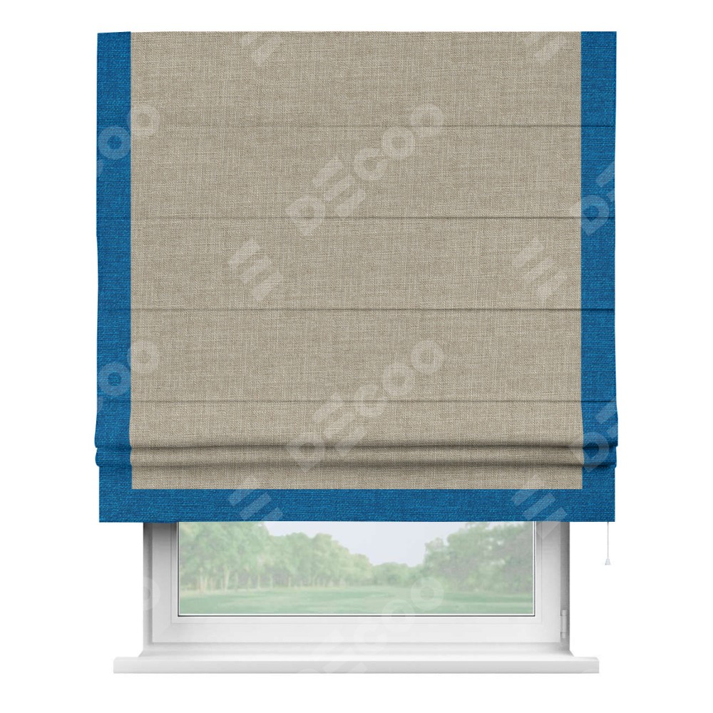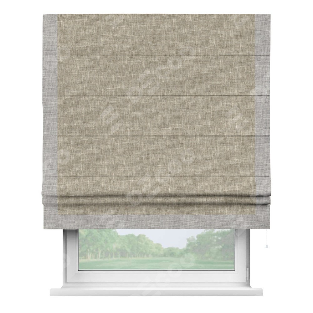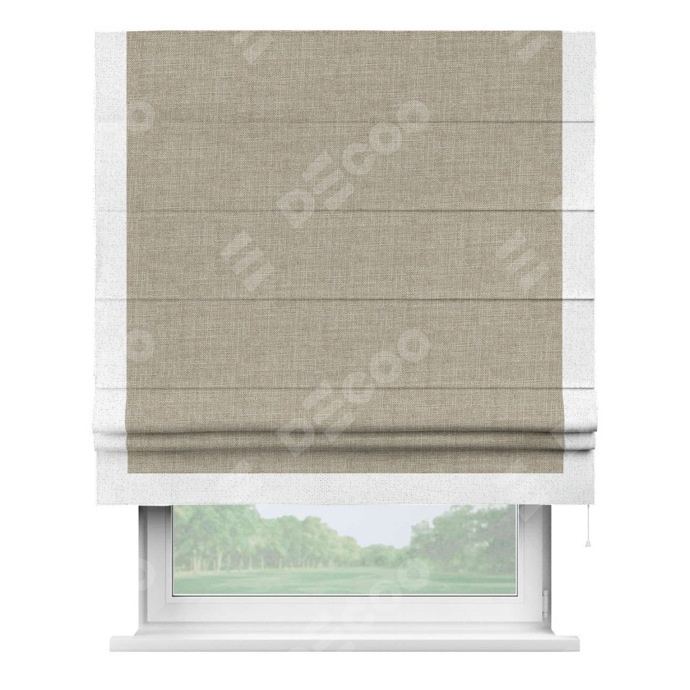Римская штора «Кортин» для проёма, лён бежевый, с кантом Виктория