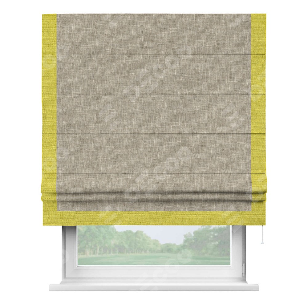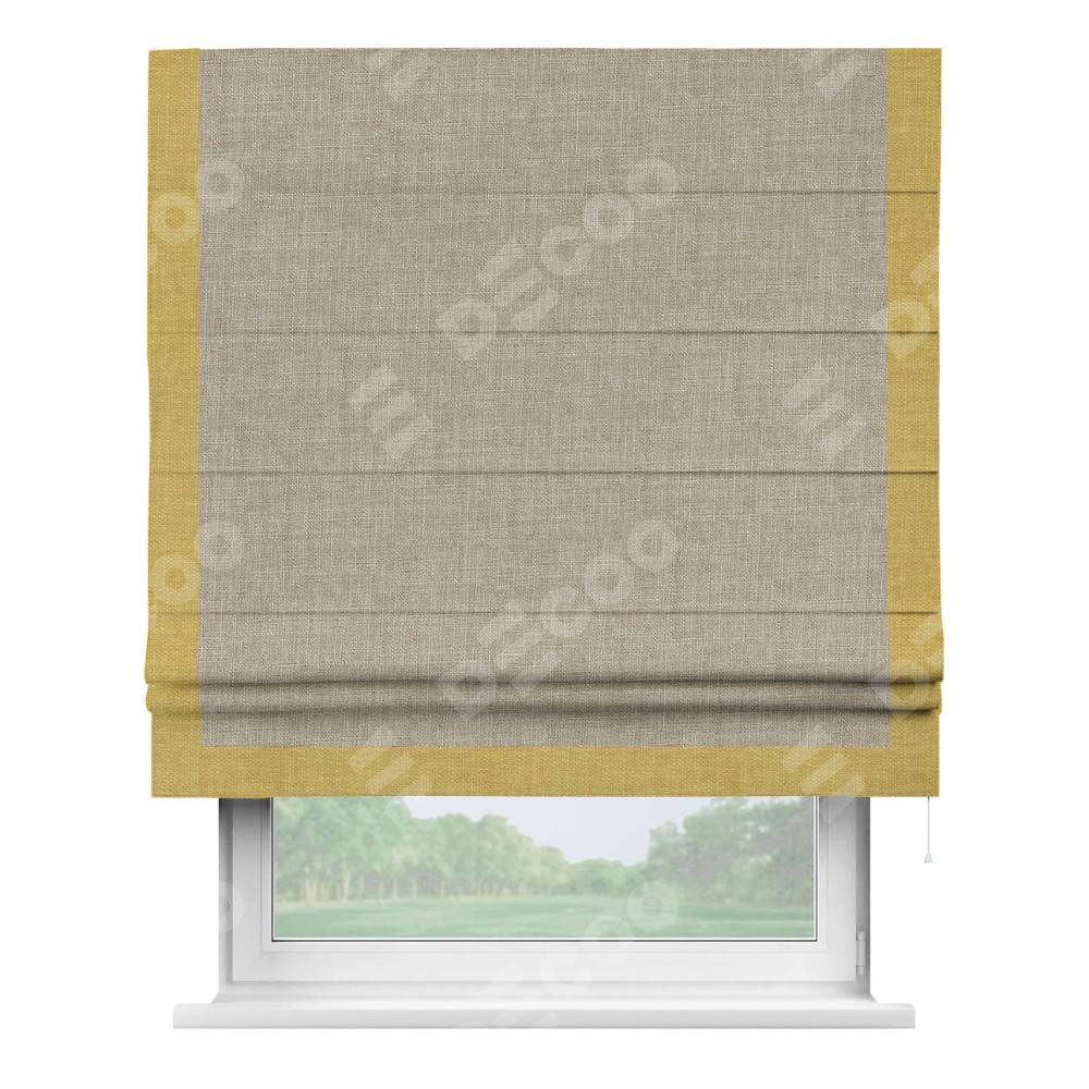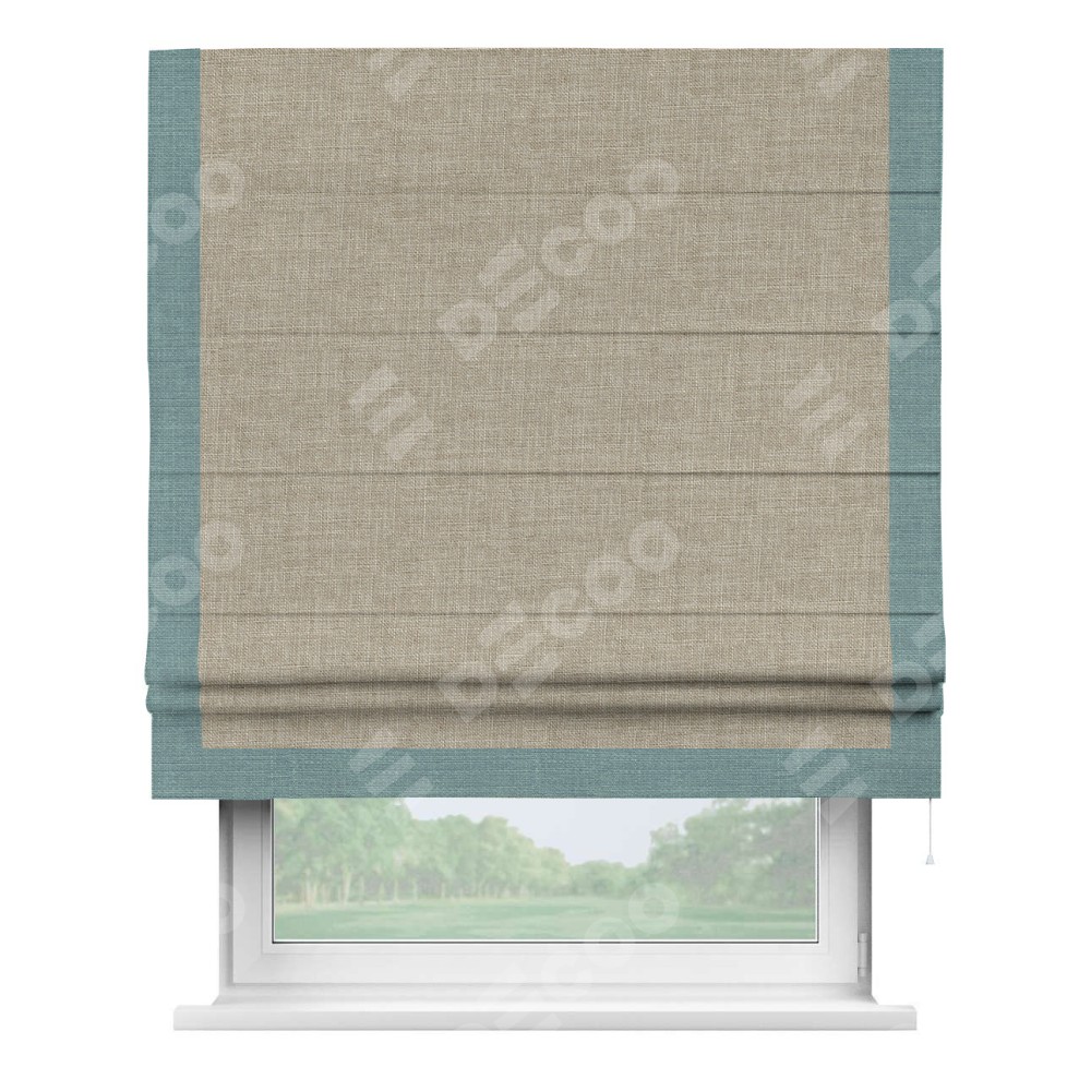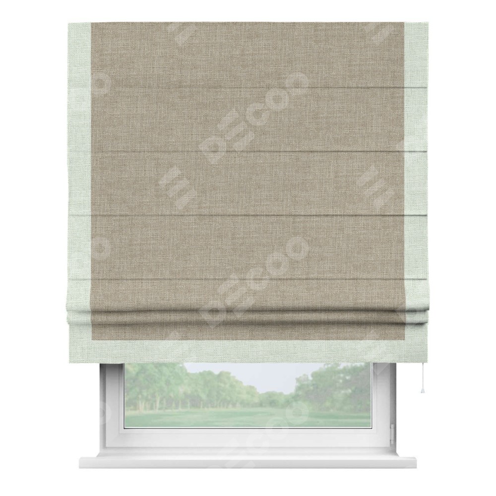 Римская штора «Кортин» для проёма, лён бежевый, с кантом Виктория