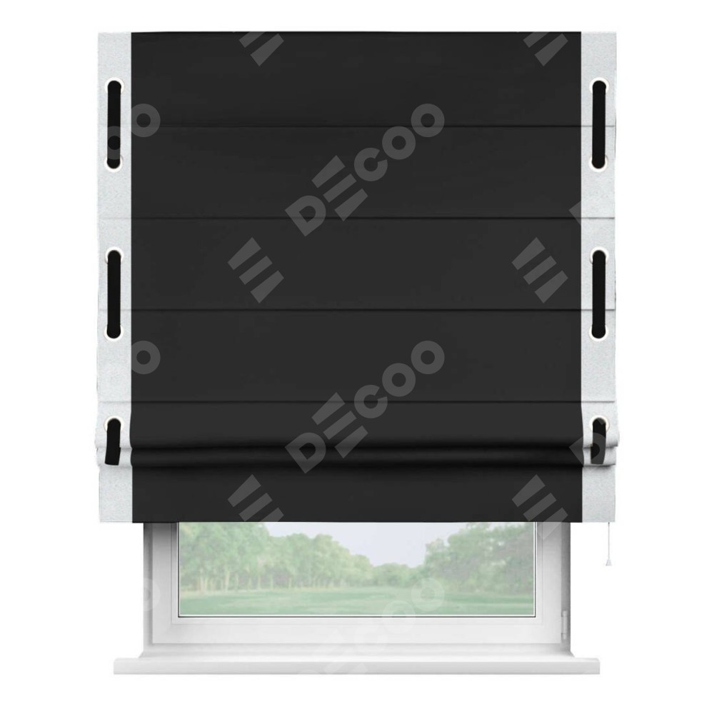 Классическая римская штора производителя «Cortin», пошита из ткани однотонный блэкаут черный, артикул: 37. Имеет универсальный механизм и подходит для монтажа: на потолок, на стену и в нишу.