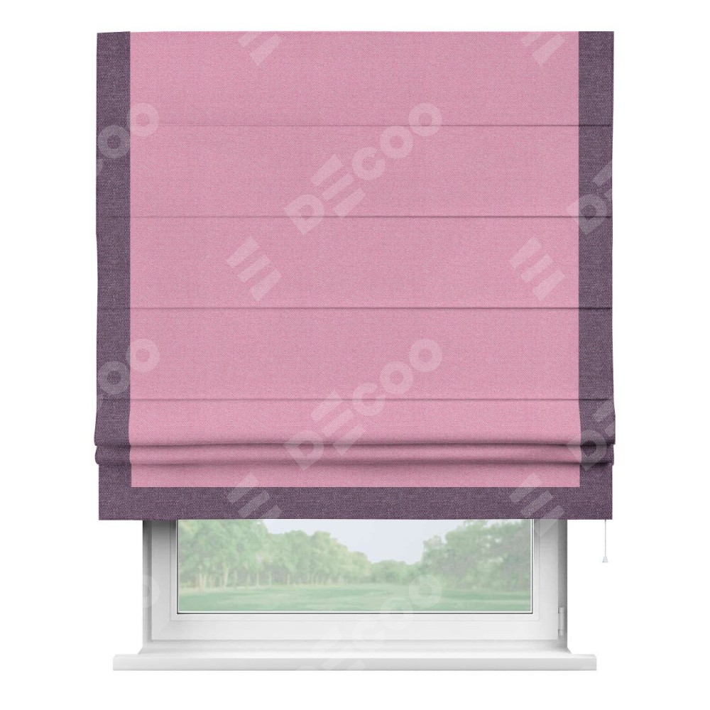 Римская штора «Кортин» с кантом Виктория, для проема, ткань лён димаут, розовый