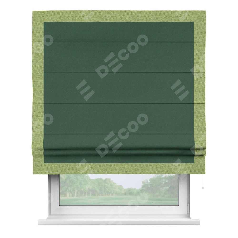 Римская штора «Кортин» с кантом Чесс, для проема, ткань лён димаут, тёмно-зелёный