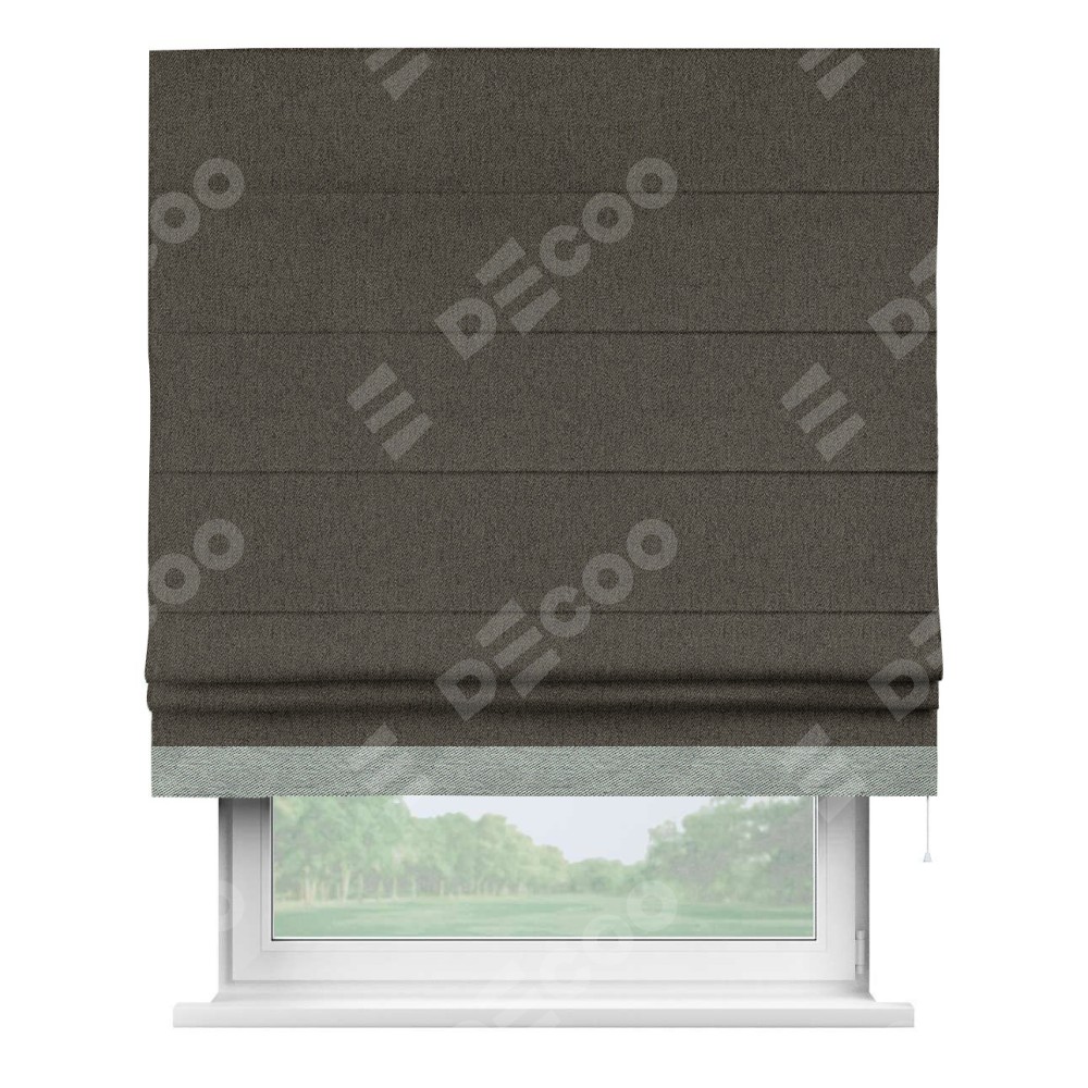 Римская штора «Кортин» с кантом Джестер, для проема, ткань твид блэкаут, тёмно-коричневый