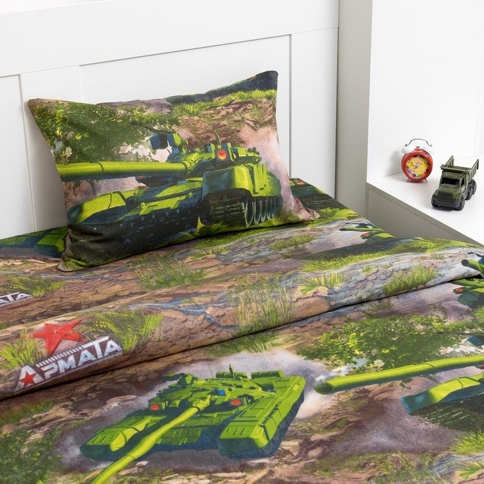Постельное бельё «Этель» 1.5 сп Танки 143*215 см, 150*214 см, 50*70 см, бязь 125 г/м2
