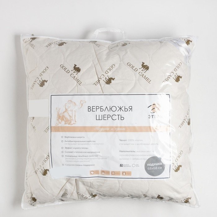 Подушка состоит из наполнителя из верблюжьей шерсти и нежнейшего лебяжьего пуха. Подушка не только обеспечивает правильное положение тела ночью, но и: