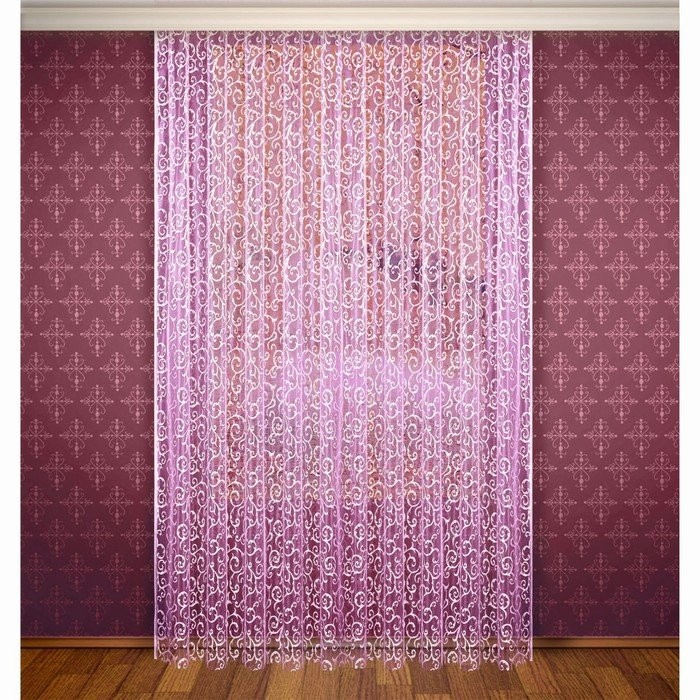Штора, ширина 300 см, высота 280 см, с шторной лентой, цвет фиолетово-розовый