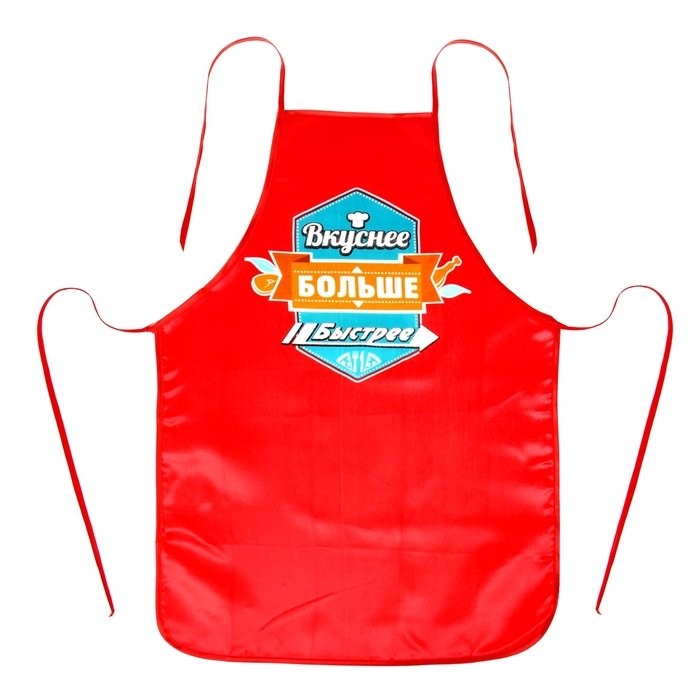 Хотите поразить свою вторую половинку кулинарными талантами и выглядеть привлекательно в процессе готовки? Тогда наша эксклюзивная разработка фартук «Вкуснее, больше, быстрее» создана специально для вас. Её уникальный принт преобразит любой домашний наряд и сделает из вас настоящую мастерицу без единого пятнышка на одежде!