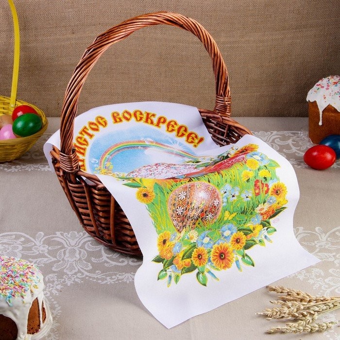 Рушник — один из самых древних и символичных предметов, дошедших до наших дней и не потерявших своего назначения. Пасхальный рушник (или салфетка) появился с принятием христианства на Руси. На нём изображены красивые православные храмы, религиозная символика и надписи «Христос Воскрес».