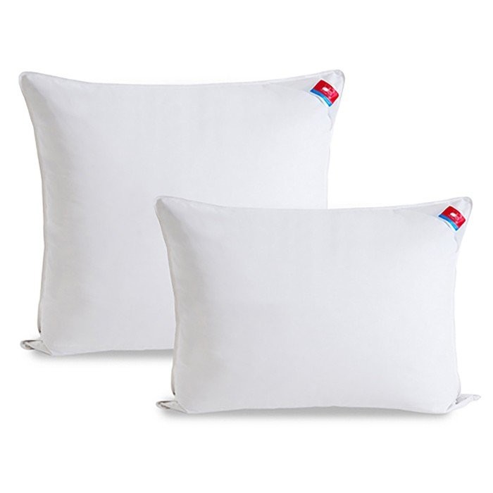 Натуральный гусиный пух и перо первой категории, чехол их прочного пуходержащего твила с белоснежным шёлковым кантом по краям — это всё Подушка «Искушение» 50×70 см, 75−80% гусиный пух, 20−25% гусиное перо, твил 100% хлопок.
