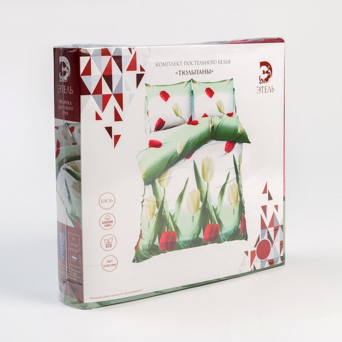 Постельное бельё «Этель» 2 сп. Тюльпаны 175×215 см, 200×220 см, 70×70 см — 2 шт., 100% хлопок, бязь 125 г/м²