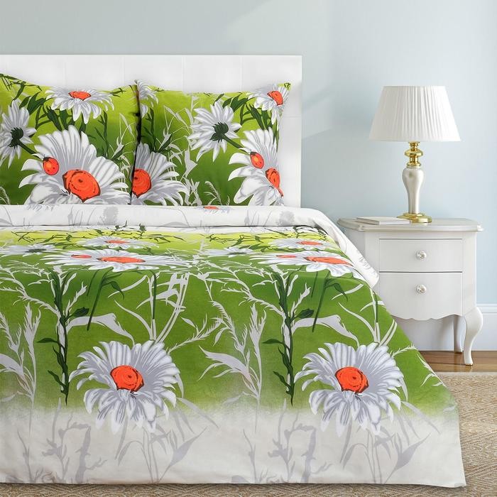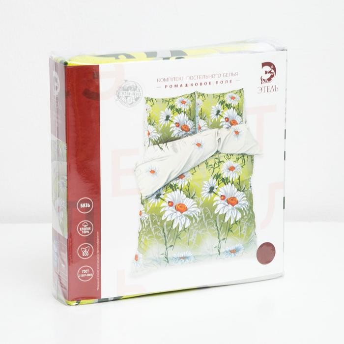 Постельное бельё «Этель» 2 сп. Ромашковое поле 175×215 см, 200×220 см, 70×70 см — 2 шт., 100% хлопок, бязь 125 г/м²