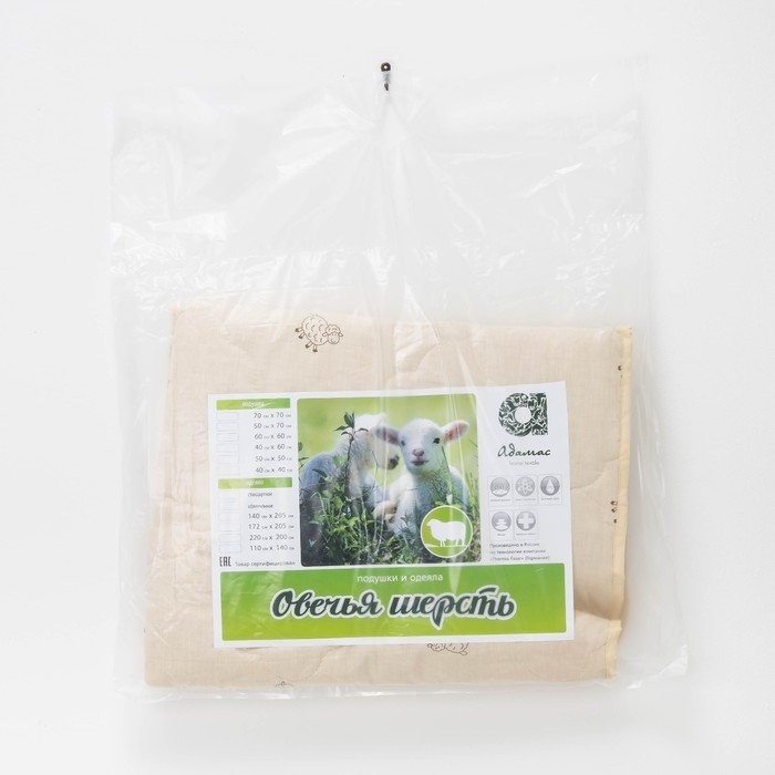 Одеяло Адамас облегчённое Овечья шерсть, размер 110×140±5 см, 200 г/м²