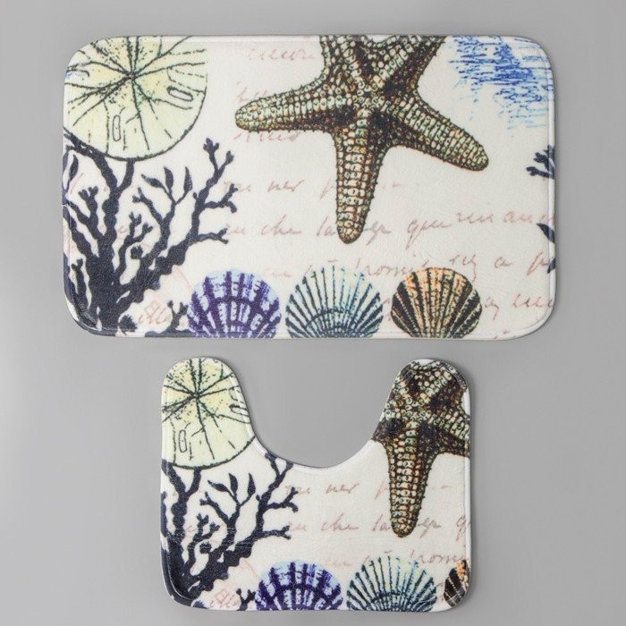 Набор ковриков для ванны и туалета Доляна «На дне», 2 шт: 40×45, 45×75 см