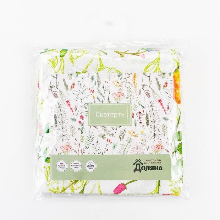 Скатерть Доляна «Полевые цветы» 110×144 см, 100% хлопок, рогожка, 164 г/м2