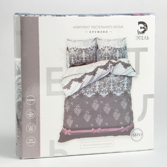 Постельное бельё «Этель» дуэт Кружево, размер 143×215 см — 2 шт., 220×240 см, 70×70 см — 2 шт., 100% хлопок, поплин, 125 г/м2