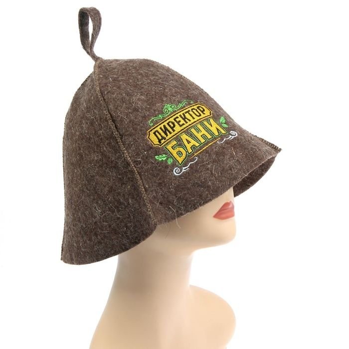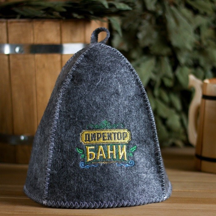 Шапка для бани с вышивкой из серого войлока " Директор Бани "