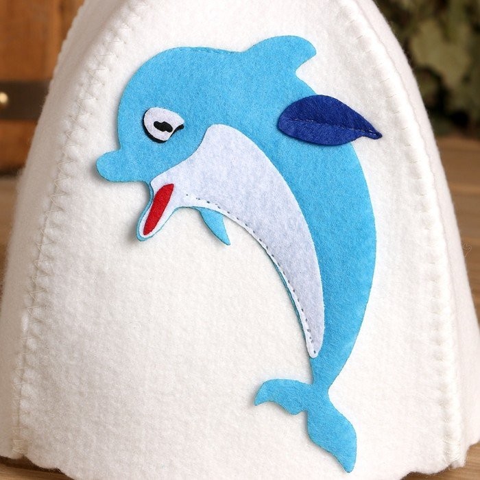 Шапка для бани с детской аппликацией «Дельфинчик» войлок