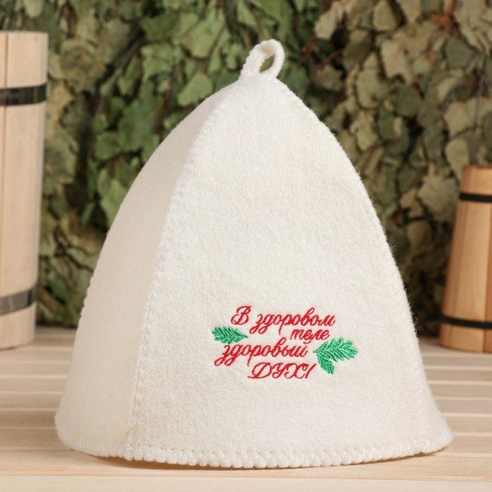 Шапка для бани с вышивкой «В здоровом теле здоровый дух», первый сорт