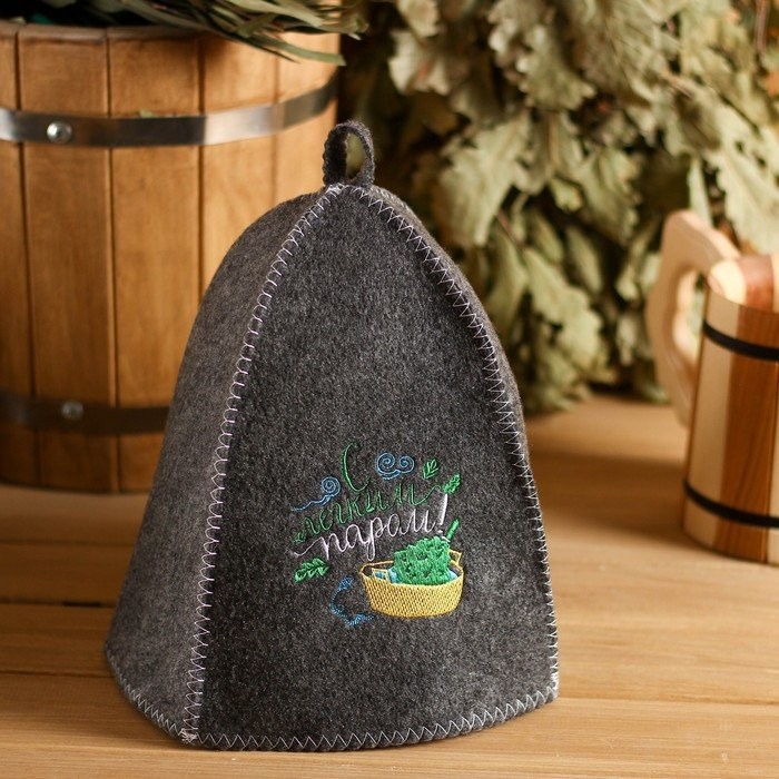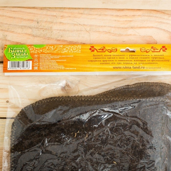 Для комфортного отдыха в парной возьмите с собой набор банных принадлежностей. Предметы из этого комплекта предохраняют тело от перегрева и являются средствами индивидуального пользования. Влажные изделия рекомендуется сушить в расправленном виде на горизонтальной поверхности. Принадлежности из войлока и фетра стирайте вручную при температуре воды 30 °C.