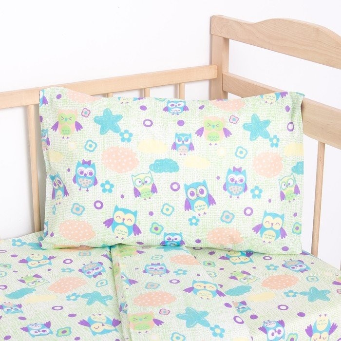 Постельное бельё Galtex «Совушки» фисташка, 147×112, 100×150, 40х60см -1 шт