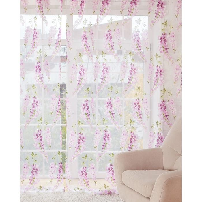 Тюль «Этель» Виноградная лоза (лиловый) без утяжелителя, ширина 135 см, высота 270 см