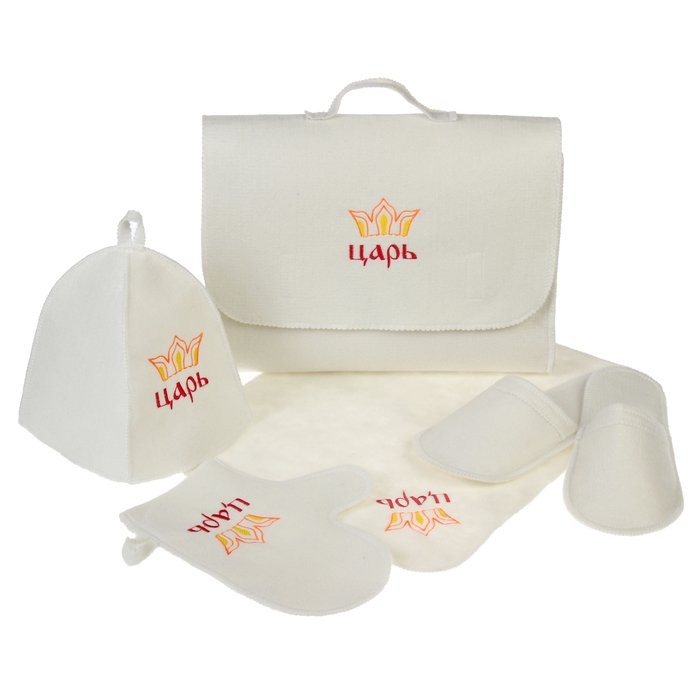 Для комфортного отдыха в парной возьмите с собой набор банных принадлежностей. Предметы из этого комплекта предохраняют тело от перегрева и являются средствами индивидуального пользования. Влажные изделия рекомендуется сушить в расправленном виде на горизонтальной поверхности. Принадлежности из войлока и фетра стирайте вручную при температуре воды 30 °C.