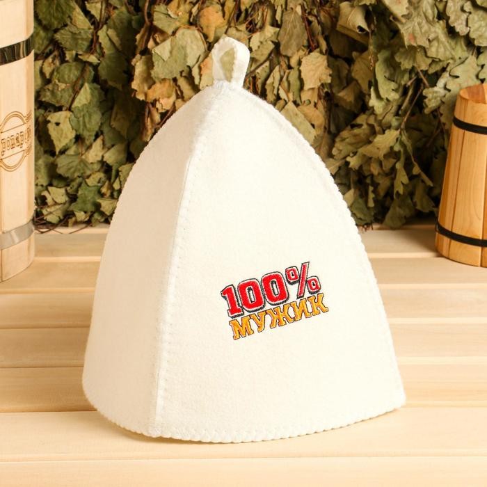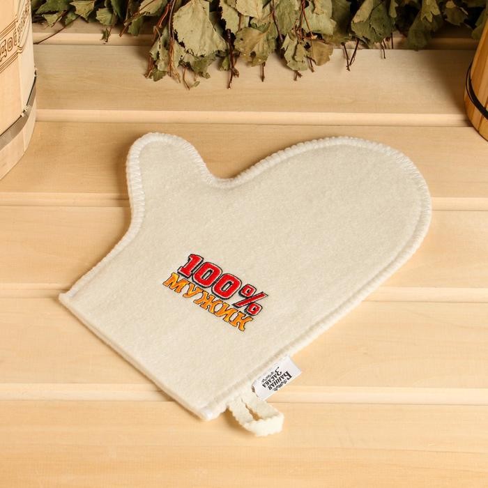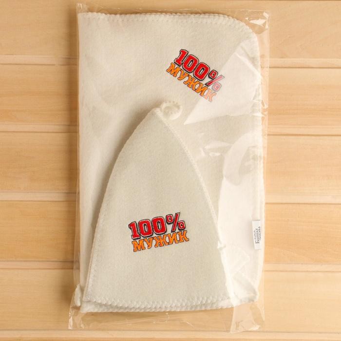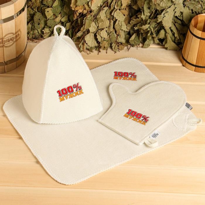 Набор для бани «100% Мужик» вышивка шапка, коврик и рукавица