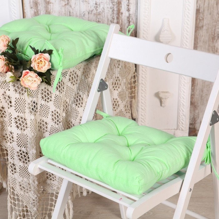 Набор подушек для стула 35×35 см 2шт, цв салатовый, бязь, холлофайбер