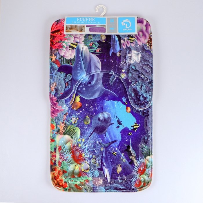 Набор ковриков для ванны и туалета Доляна «Морское дно», 2 шт: 40×45, 45×75 см