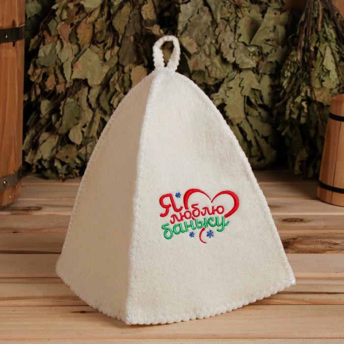Банная шапка с вышивкой «Я люблю баньку!»