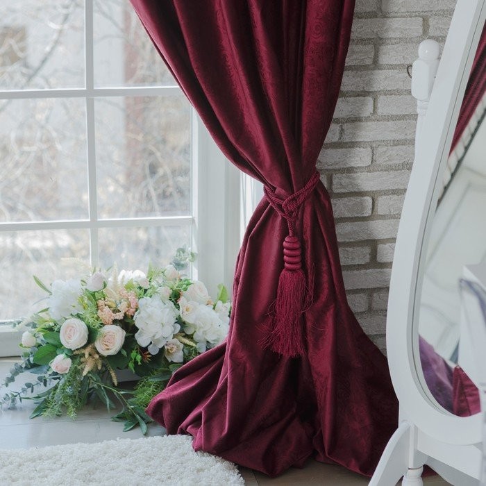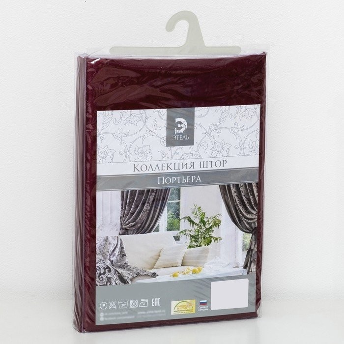 Штора портьерная «Этель» 170×270 см Валенсия Вишнёвый,100% п/э