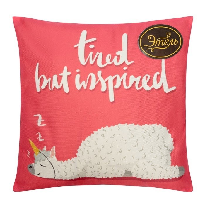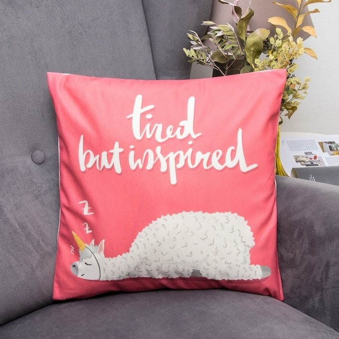 Наволочка Этель «Tired but inspired» 40×40 см, велюр