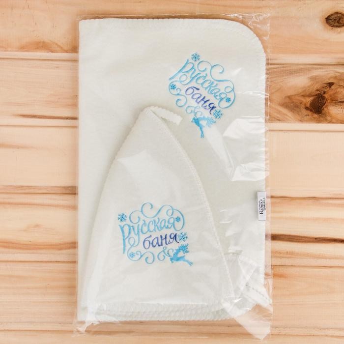 Набор банный: шапка и коврик «Русская баня» в пакете