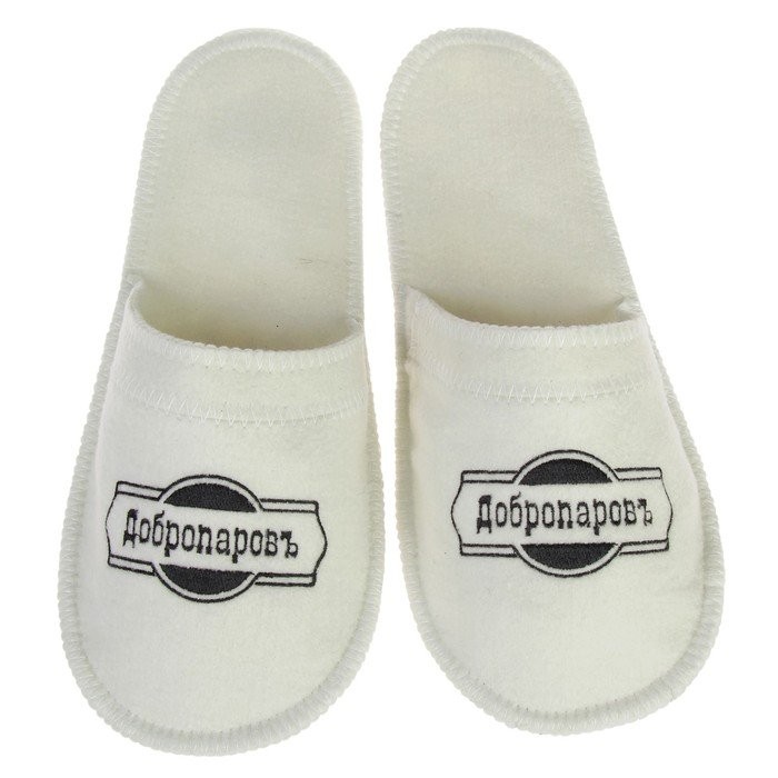 Тапочки для бани белые с черной с вышивкой «ДОБРОПАРОВЪ»