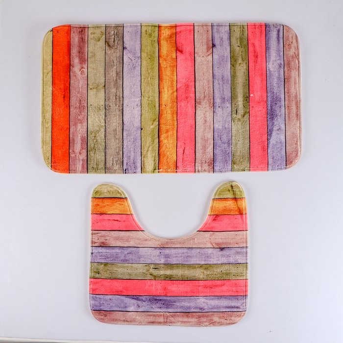 Набор ковриков для ванны и туалета Доляна «Цветные деревяшки», 2 шт: 40×45, 45×75 см