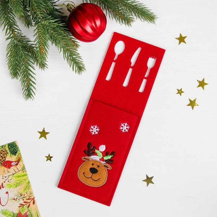 Конверт сделан из фетра и имеет праздничный дизайн.
