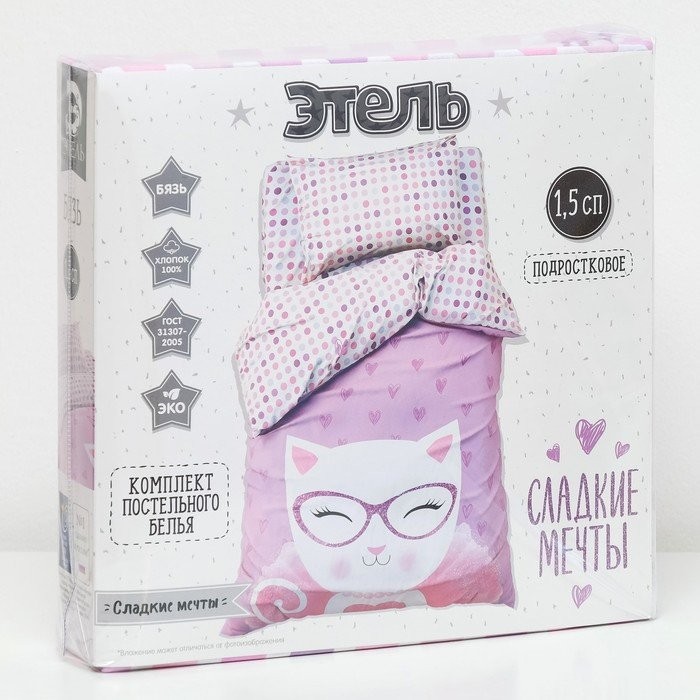 Постельное бельё «Этель» Сладкие мечты 143*215 см, 150*214 см, 50*70 см -1 шт, 100% хл, бязь 125 г/м2