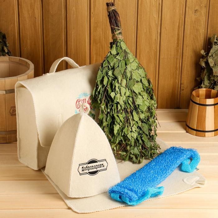 Для комфортного отдыха в парной возьмите с собой набор банных принадлежностей. Предметы из этого комплекта предохраняют тело от перегрева и являются средствами индивидуального пользования. Влажные изделия рекомендуется сушить в расправленном виде на горизонтальной поверхности. Принадлежности из войлока и фетра стирайте вручную при температуре воды 30 °C.