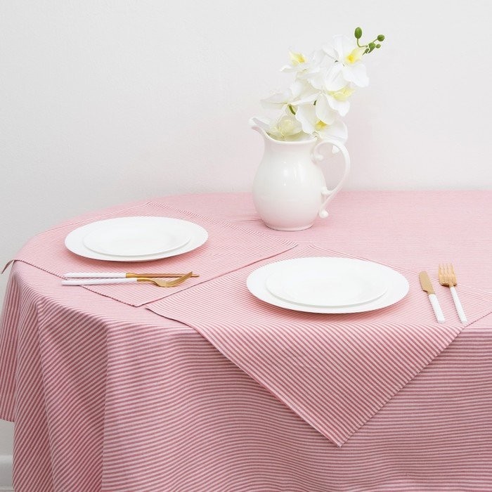Набор Доляна скатерть 145х200см/салфетки 40х40см 4шт, Розовые полоски, 100%пэ,рогожка 200 гр/м 358