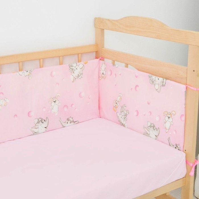 Бортик «Слонята» бязь, поролон, 4 части (2 ч: 30*60см, 2 ч: 30*120см), цвет роз. 542.