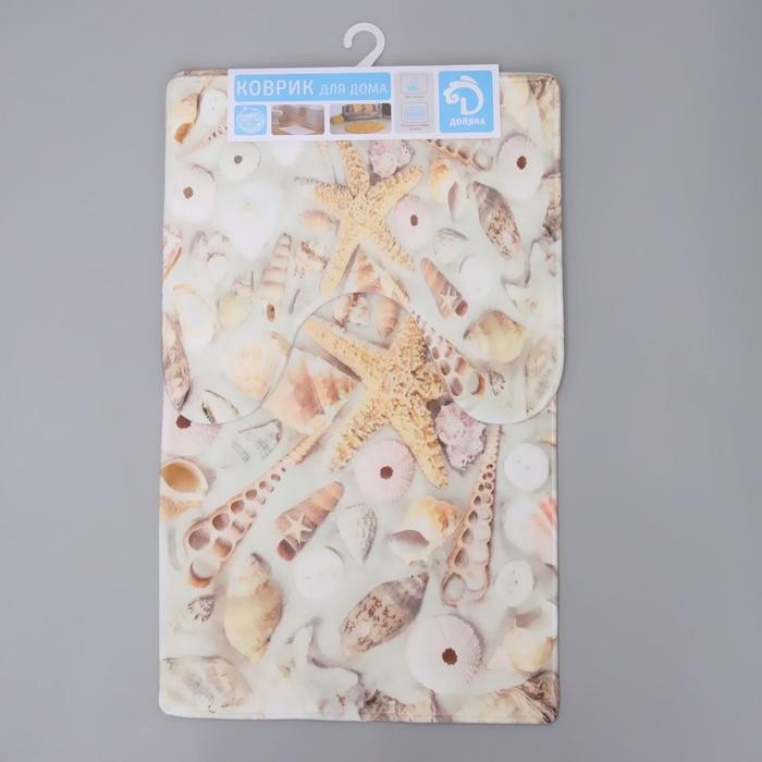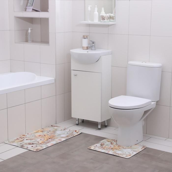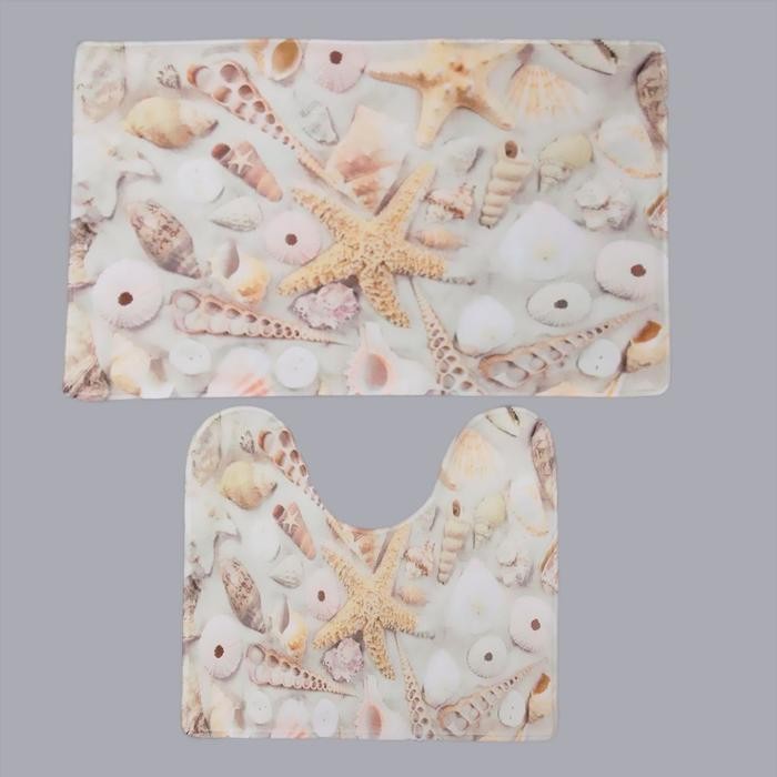 Набор ковриков для ванны и туалета Доляна «Ракушки», 2 шт: 40×45, 45×75 см
