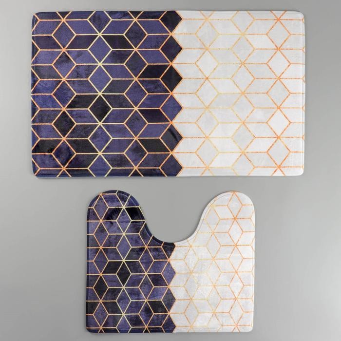 Набор ковриков для ванны и туалета Доляна «Геометрия», 2 шт: 40×45, 45×75 см