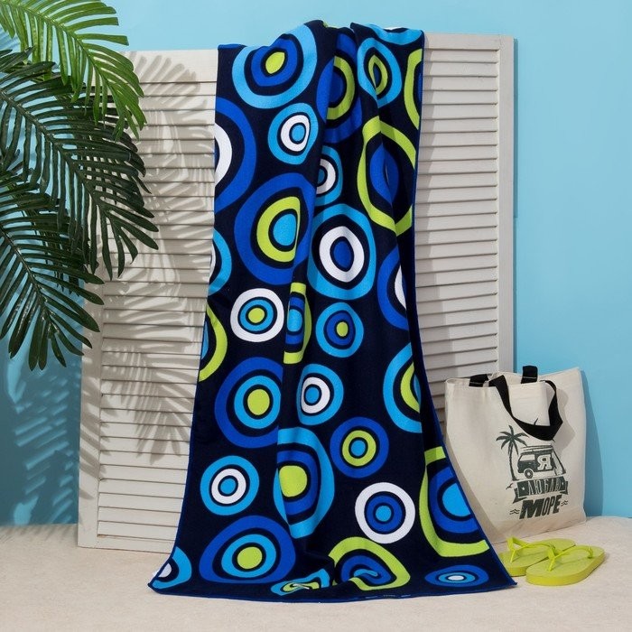 Полотенце пляжное Этель 70*140 см, Синие круги, микрофибра 250гр/м2
