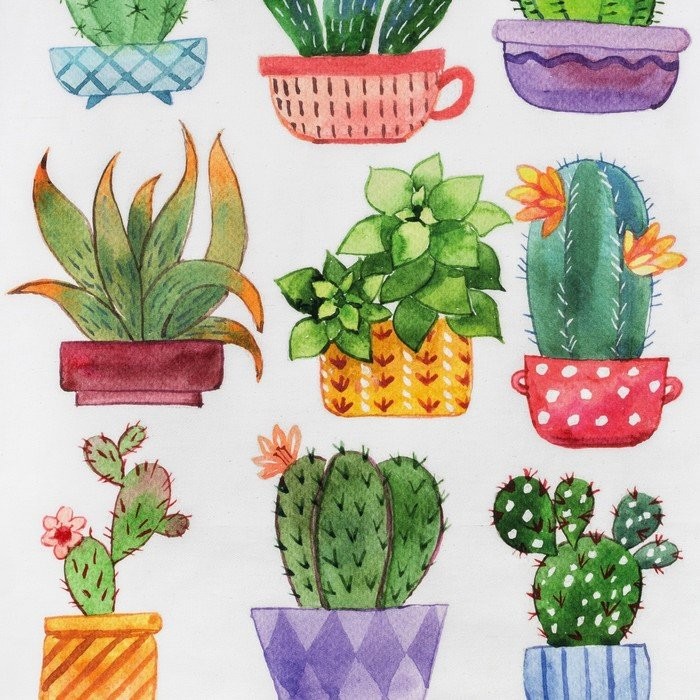 Полотенце «Этель» Кактусы 40×73 см, 100% хл, саржа 190 гр/м2