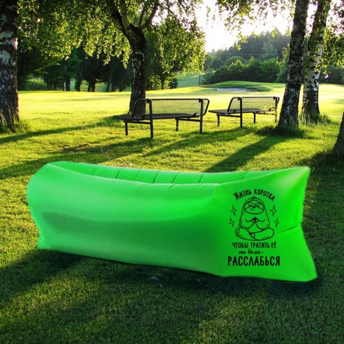 Воздух в это надувное приспособление наполняется самостоятельно, и каких-либо навыков и инструментов для установки не требуется. Причем при наличии небольшого ветерка мешок и вовсе не придется трясти — шезлонг надуется сам. В сложенном виде не занимает много места и практически ничего не весит. Зато, когда необходимо, вы всегда надуете его за несколько секунд.