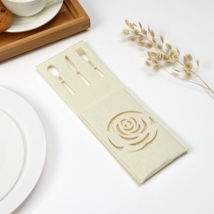 Конверт для столовых приборов Доляна"Роза» цвет молочный,9 х 25см, 100% п/э, фетр